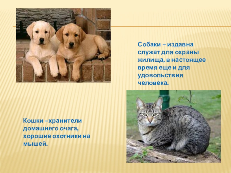 Кошки –хранители домашнего очага, хорошие охотники на мышей.