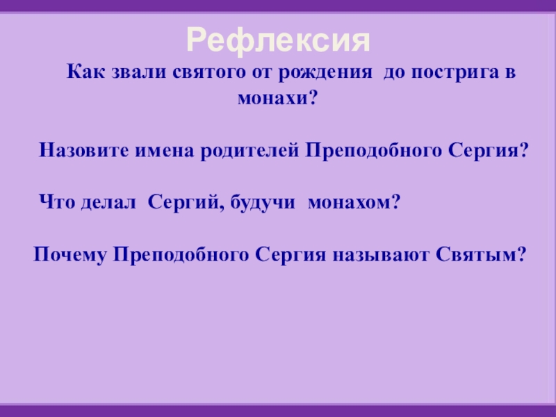 Преподобный – святой, являющийся образцом монашеской жизни.