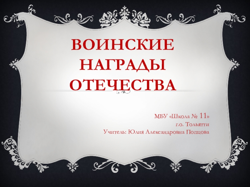 Воинские награды отечестваМБУ «Школа № 11» г.о. ТольяттиУчитель: Юлия Александровна Попцова
