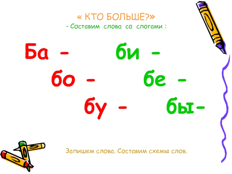 « КТО БОЛЬШЕ?» - Составим слова со слогами : Ба -    би -