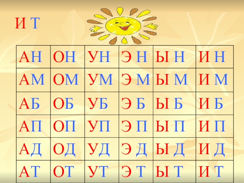 А О И У Ы Э М ИН ИД ИТ ИП ИБ ИХ И