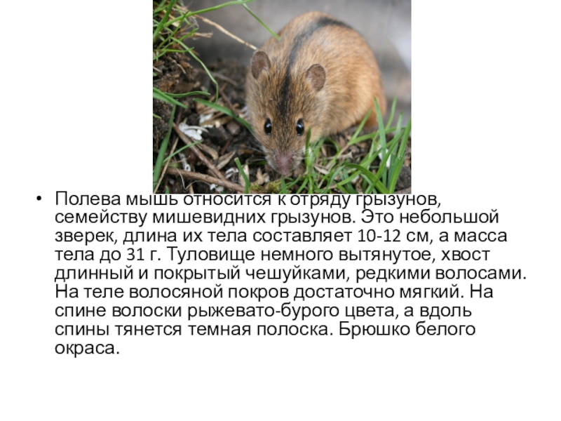 Полева мышь относится к отряду грызунов, семейству мишевидних грызунов. Это небольшой