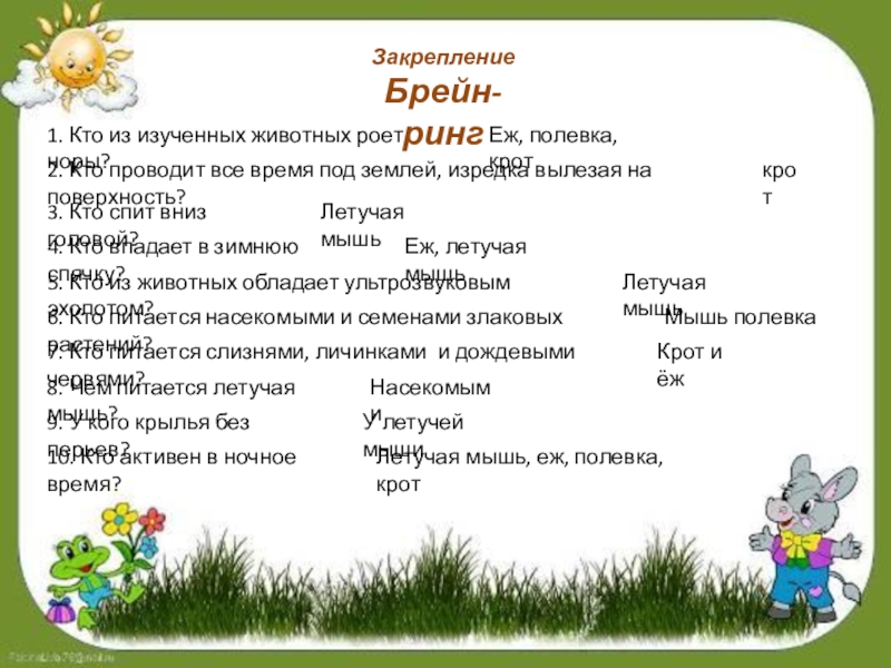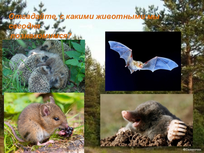 Летучая мышь, еж, полевка, крот