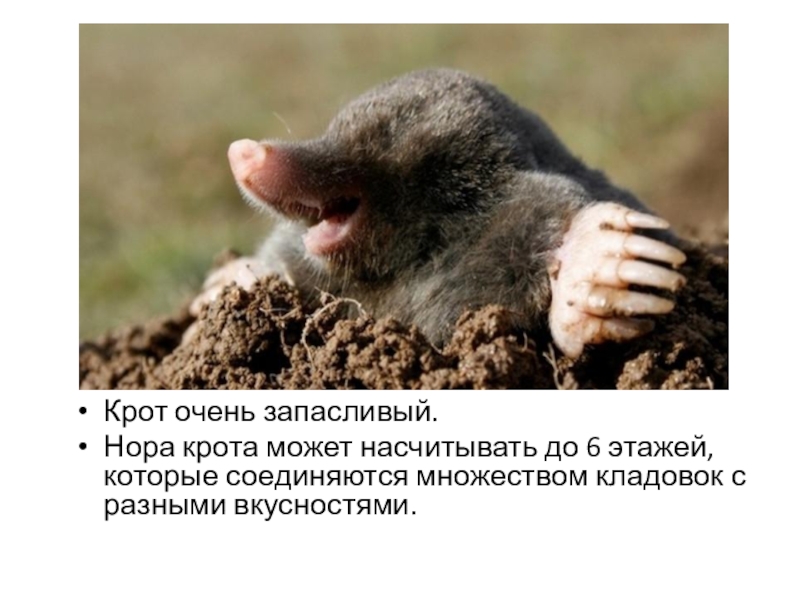 Слайд 4Крот очень запасливый.