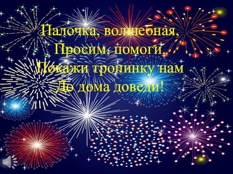 Палочка, волшебная,Просим, помоги.Покажи тропинку намДо дома доведи!