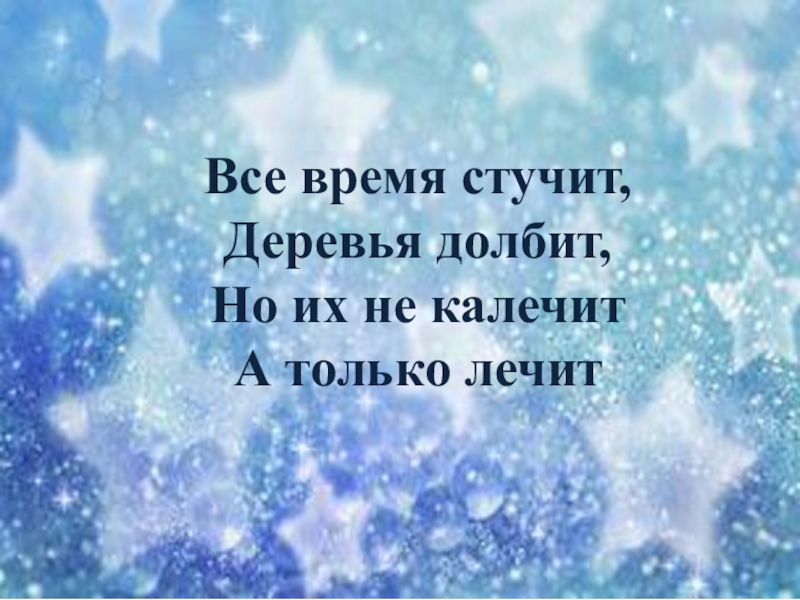 Все время стучит,Деревья долбит, Но их не калечитА только лечит