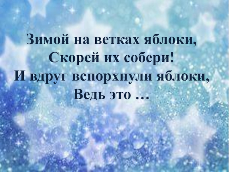 Зимой на ветках яблоки, Скорей их собери!И вдруг вспорхнули яблоки,Ведь это …