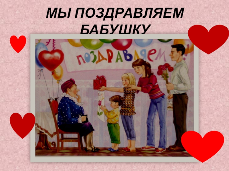 Слайд 14МЫ ПОЗДРАВЛЯЕМ БАБУШКУ