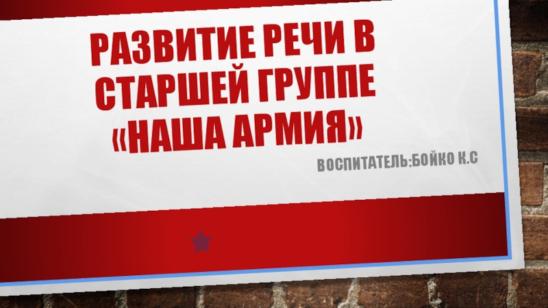 Развитие речи в старшей группе  «Наша армия»Воспитатель:Бойко К.С