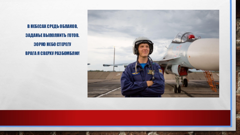 В небесах средь облаков,Заданье выполнить готов.Зорко небо стерегуВрага я сверху разбомблю!