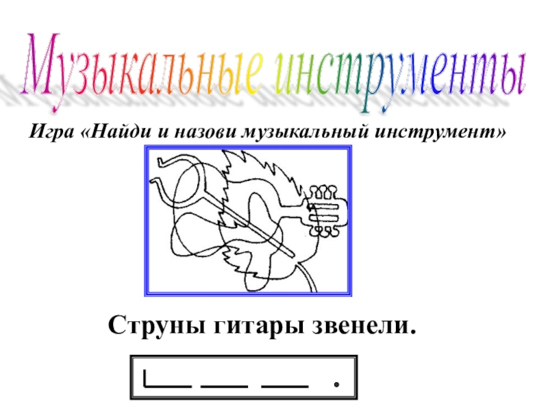 Музыкальные инструментыИгра «Найди и назови музыкальный инструмент»  Струны гитары звенели.