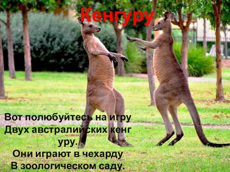 КенгуруВот полюбуйтесь на игру Двух австралийских кенгуру. Они играют в чехарду В зоологическом саду.