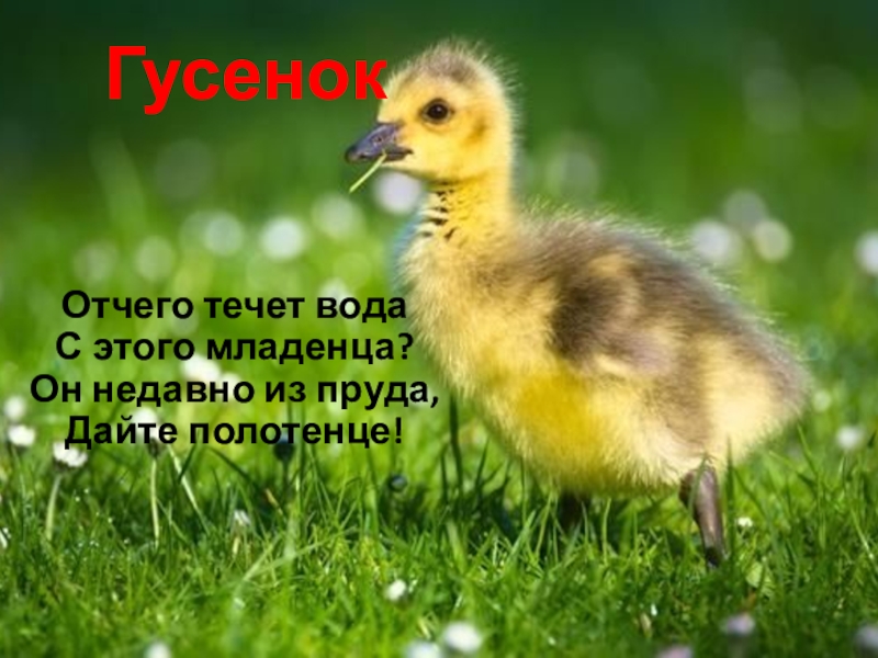 ГусенокОтчего течет вода С этого младенца? Он недавно из пруда, Дайте полотенце!