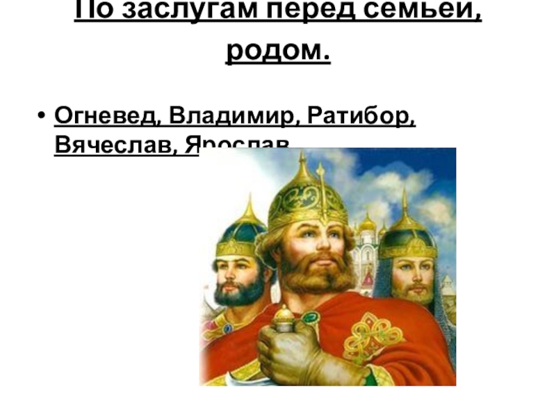 По заслугам перед семьёй, родом. Огневед, Владимир, Ратибор, Вячеслав, Ярослав