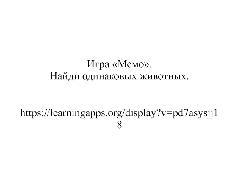 Слайд 13 Игра «Мемо». Найди одинаковых животных. https://learningapps.org/display?v=pd7asysjj18