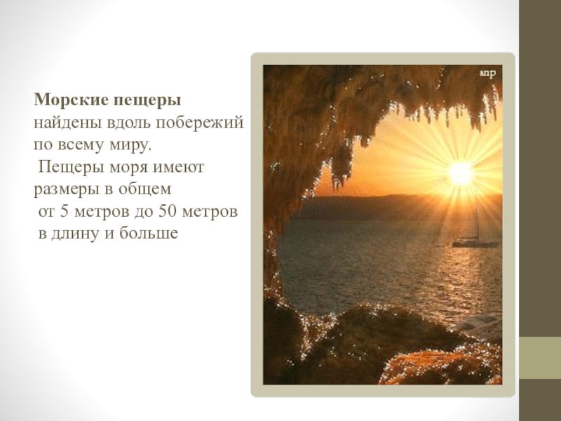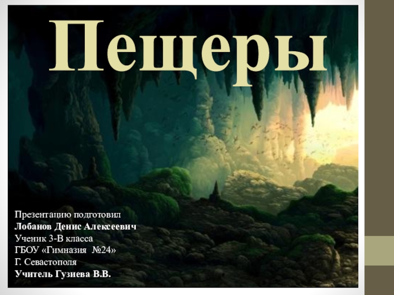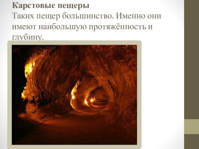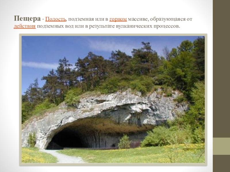 Слайд 6Пещера - Полость, подземная или в горном массиве, образующаяся от действия