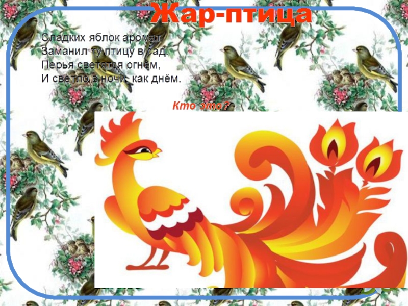 Презентация, доклад к занятию по внеурочной деятельности на тему Жар- птица