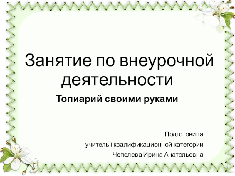 Занятие по внеурочной деятельностиТопиарий своими рукамиПодготовила учитель I квалификационной категории Чепелева Ирина Анатольевна