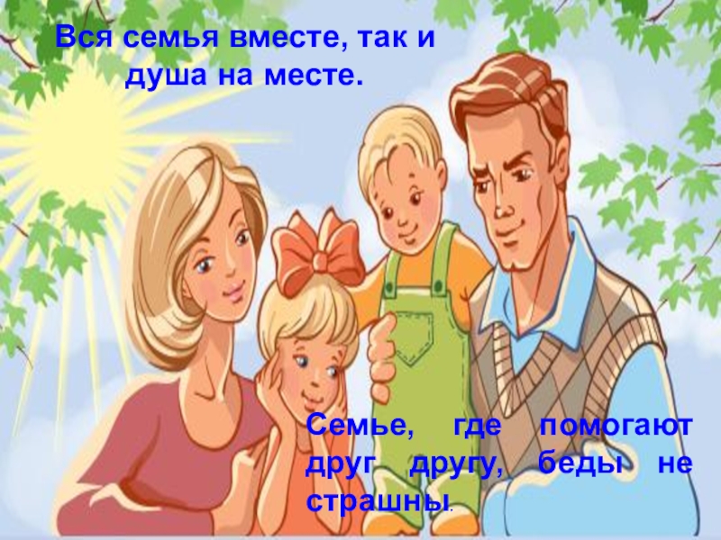 Вся семья вместе, так и душа на месте.Семье, где помогают друг другу, беды не страшны.