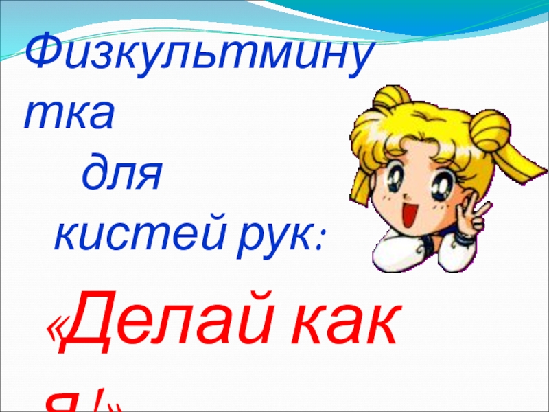 «Делай как я!»Физкультминутка	  для  кистей рук: