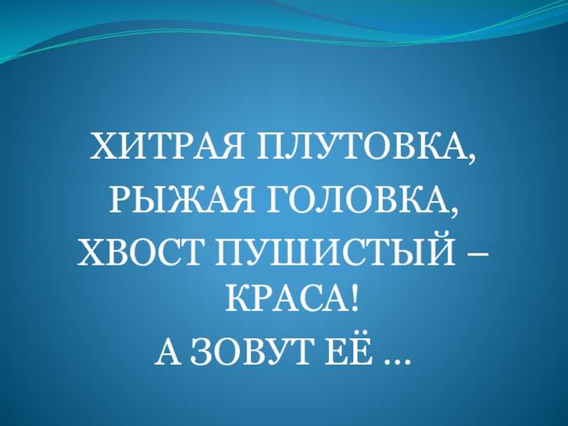 ХИТРАЯ ПЛУТОВКА,РЫЖАЯ ГОЛОВКА,ХВОСТ ПУШИСТЫЙ – КРАСА!А ЗОВУТ ЕЁ …