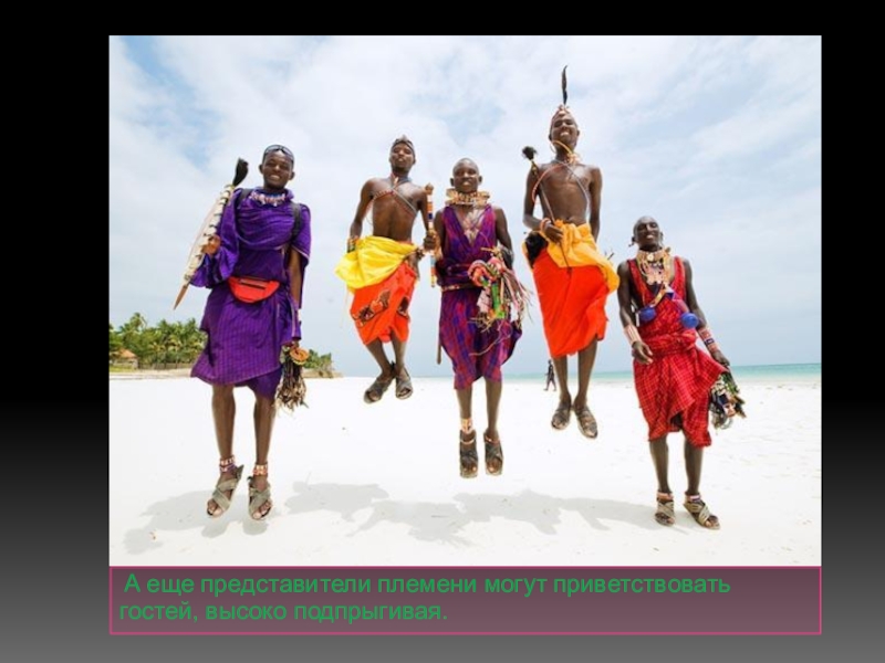 Слайд 6 А еще представители племени могут приветствовать гостей, высоко подпрыгивая.