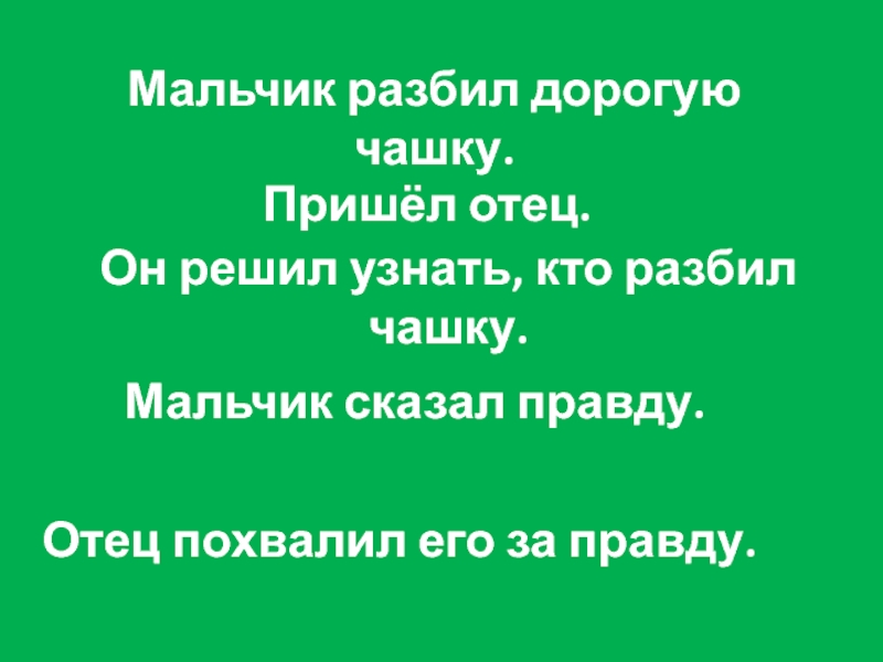 Отец похвалил его за правду.