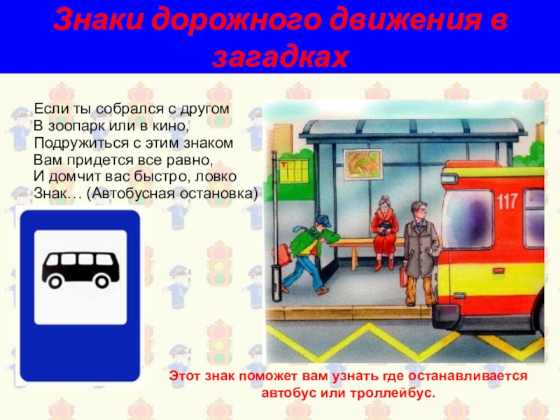 Этот знак поможет вам узнать где останавливается автобус или троллейбус.
