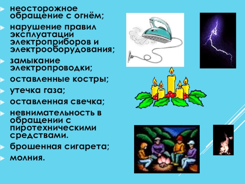 Слайд 20неосторожное обращение с огнём;
