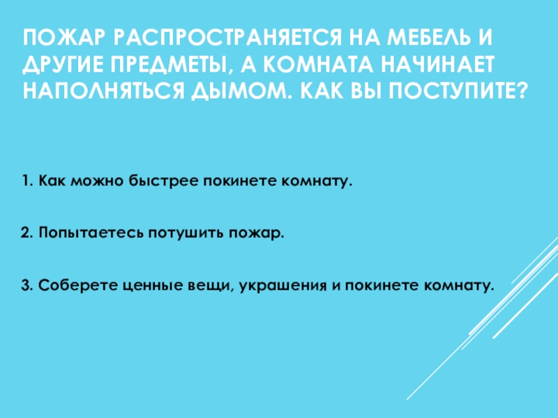 Слайд 34ПОЖАР РАСПРОСТРАНЯЕТСЯ НА МЕБЕЛЬ И ДРУГИЕ ПРЕДМЕТЫ, А КОМНАТА НАЧИНАЕТ НАПОЛНЯТЬСЯ