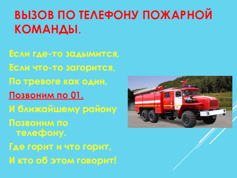 Слайд 25ВЫЗОВ ПО ТЕЛЕФОНУ ПОЖАРНОЙ КОМАНДЫ.