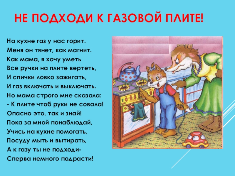 Слайд 21НЕ ПОДХОДИ К ГАЗОВОЙ ПЛИТЕ!