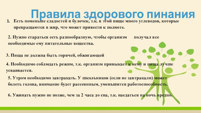 4. Необходимо соблюдать режим, т.к. организм привыкает к нему и пища лучше усваивается.