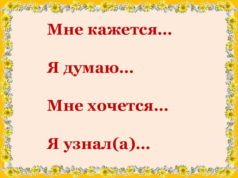 Мне кажется…Я думаю…Мне хочется…Я узнал(а)…