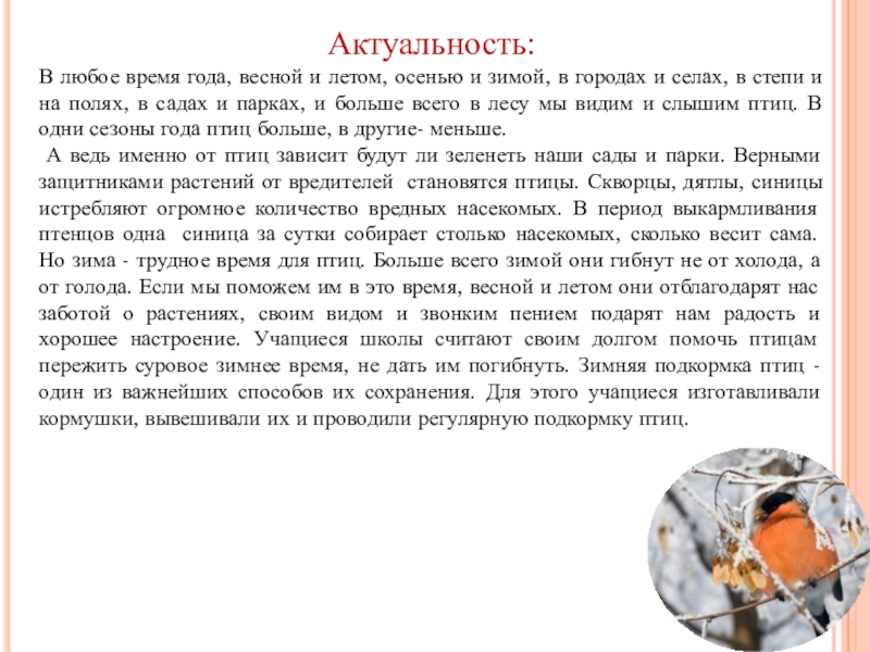 зимующих птицах нашей местности