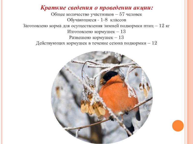 Слайд 23В РАМКАХ АКЦИИ «ПОКОРМИ ПТИЦ ЗИМОЙ !» ПОМИМО ИЗГОТОВЛЕНИЯ КОРМУШЕК, ПОДКОРМКИ