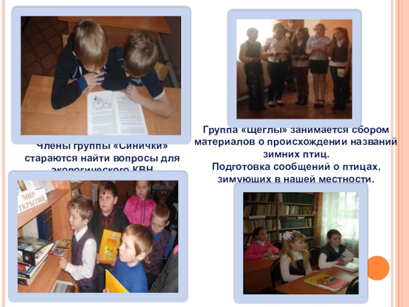 Слайд 24Члены группы «Синички» стараются найти вопросы для экологического КВН