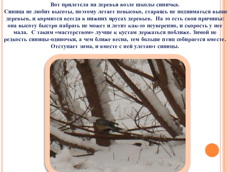 Слайд 20Вот прилетела на деревья возле школы синичка.