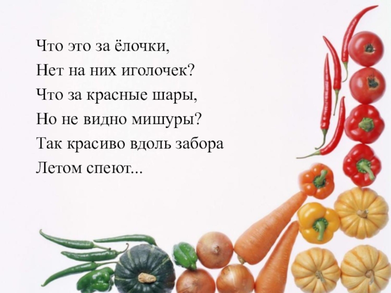 Что это за ёлочки,Нет на них иголочек? Что за красные шары,Но не видно мишуры?Так красиво вдоль забораЛетом