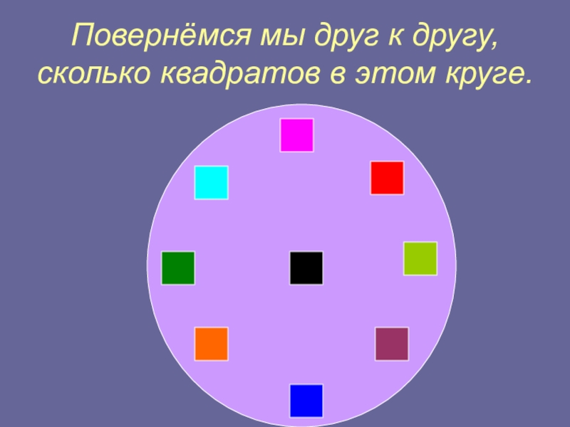 Слайд 12Повернёмся мы друг к другу, сколько квадратов в этом круге.