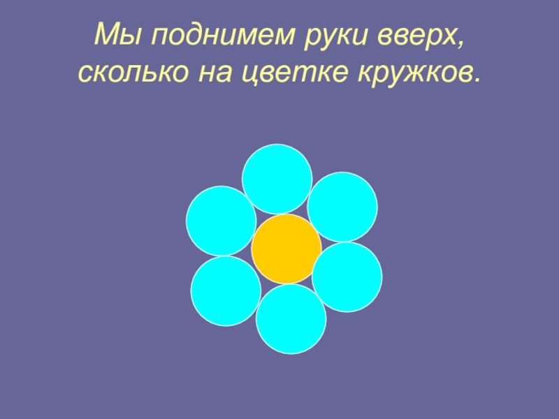 Слайд 11Мы поднимем руки вверх, сколько на цветке кружков.