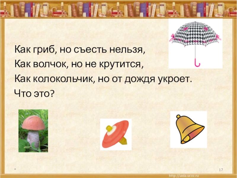 Это сайт презентаций, где можно хранить и обмениваться своими презентациями, докладами, проектами, шаблонами в формате PowerPoint с другими пользователями. Мы помогаем школьникам, студентам, учителям, преподавателям хранить и обмениваться учебными материалами.