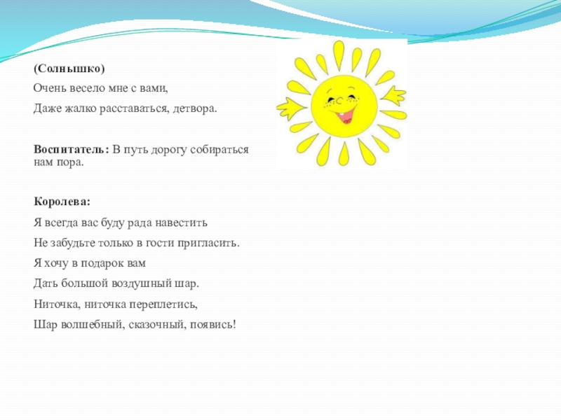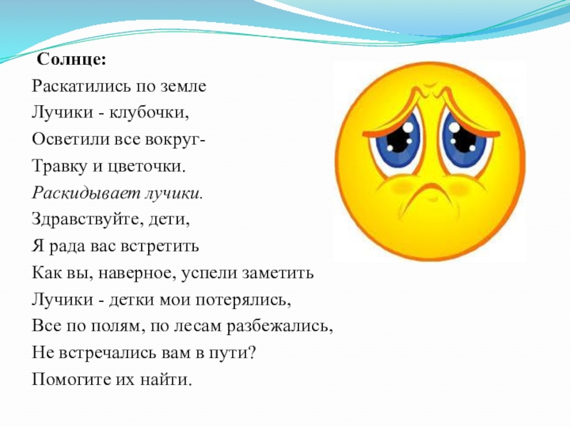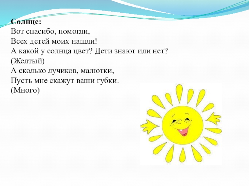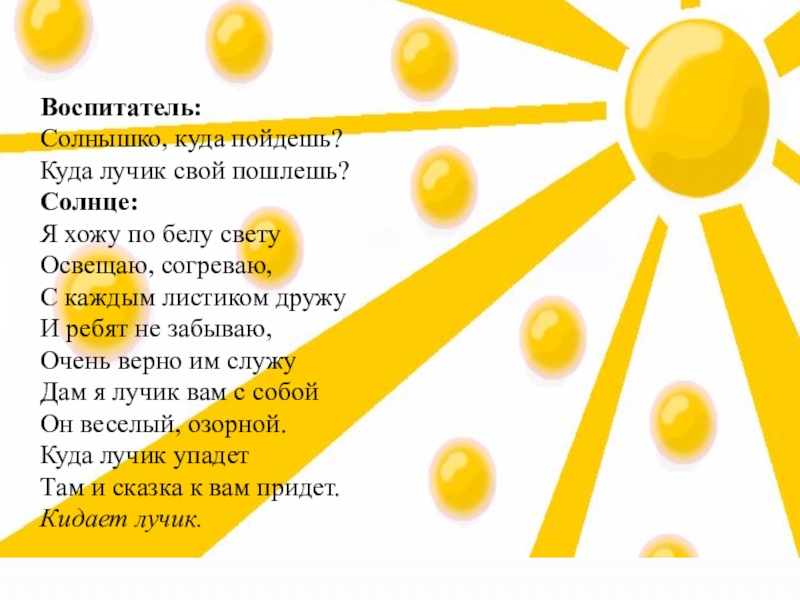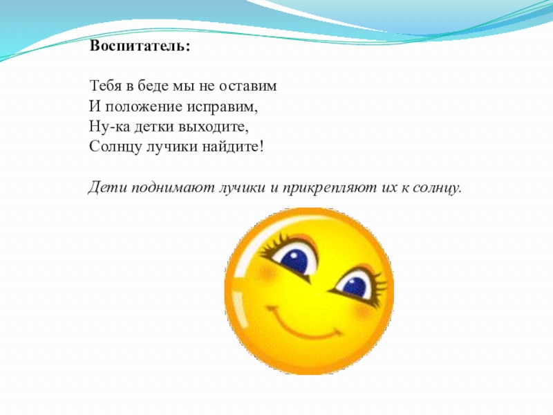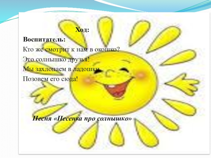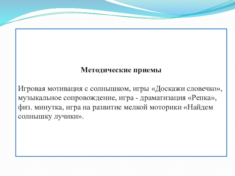 Игровая мотивация с солнышком, игры «Доскажи словечко», музыкальное сопровождение, игра