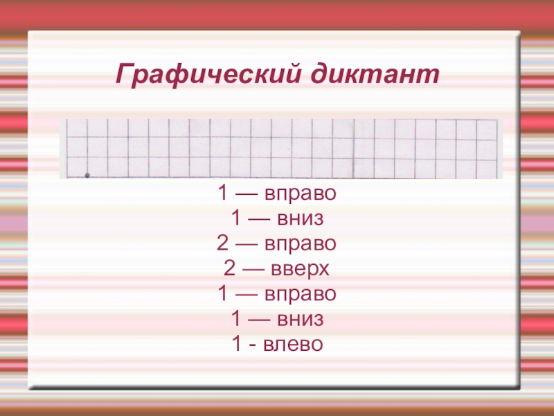 Графический диктант1клетка вверх1 — вправо1 — вниз2 — вправо2 — вверх1 — вправо1 — вниз1 - влево