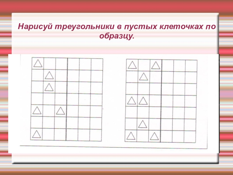 Слайд 12Нарисуй треугольники в пустых клеточках по образцу.