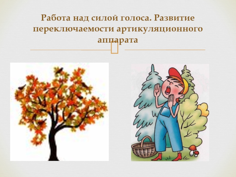 Слайд 10Работа над силой голоса. Развитие переключаемости артикуляционного аппарата