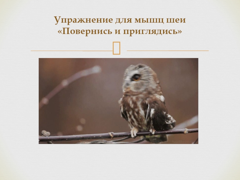 Слайд 5Упражнение для мышц шеи «Повернись и приглядись»