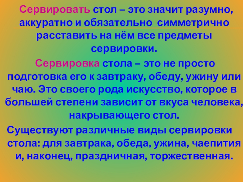 Его и сервируют по-особенному: стелют нарядную накрахмаленную скатерть, кладут салфетки, ставят красивую посуду