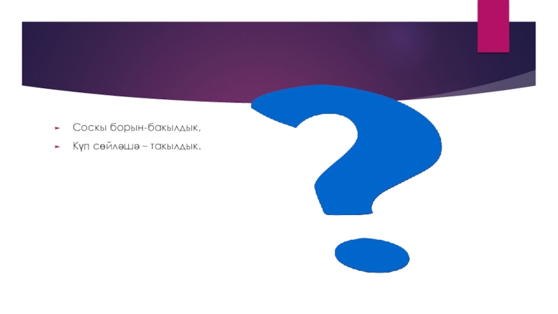 Соскы борын-бакылдык,Күп сөйләшә – такылдык.