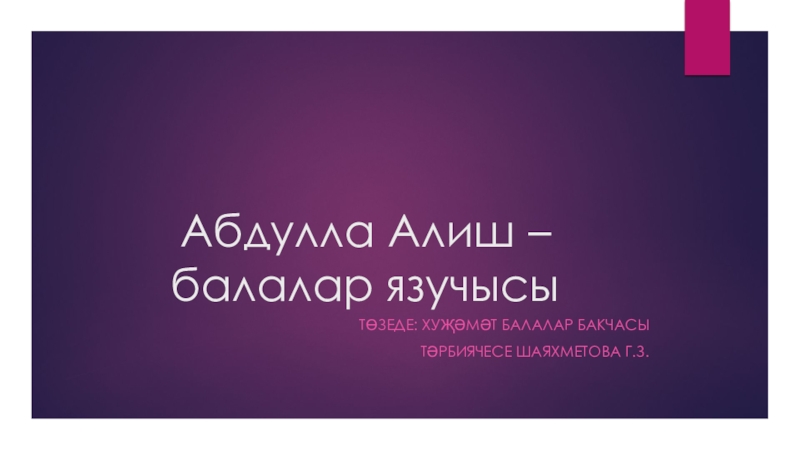 Абдулла Алиш – балалар язучысыТӨзеде: Хуҗәмәт балалар бакчасыТәрбиячесе Шаяхметова Г.З.
